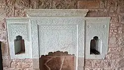 Guests were accommodated on the west side in a separate room and next to it was an armory.[3] The kitchen and a spacious courtyard with two entrances are located in the middle floor. On the upper floor are more living spaces.[2] In addition there is a prison cell on the lower floor of the mansion.[3] Furthermore there are also a library, a farm and assembly rooms in the building.[4]