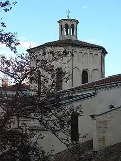 Built around 549 by the Lyon bishop Saint Sacerdos, the church was damaged in 732, then restored in the early 9th century by archbishop Leidrade. In the 10th century, it became a necropolis with three cemeteries. Archbishop Hugh of Die requested its reconstruction, which was accomplished during the 11th and 12th centuries (the bell tower in 1440).[3]