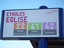 Étaules-Église, one of the three stops of the Cara'Bus urban transport network of Royan.
