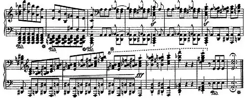 Last bars of Franz Liszt's Transcendental Étude No. 2: one of the most difficult of Liszt's études , this is a study in passages for alternating and overlapping hands.