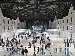 In 1851, the Imperial authorities abolished a customs barrier which was imposed on Congress Poland following the failed November Uprising (1830–1831).[33] The suppression of tariffs allowed the city to freely export its goods to Russia, where the demand for textiles was high.[33] Poland's first steam-powered loom commenced operations at Ludwik Geyer's White Factory in 1839.[34] During the first weeks of the January Uprising (1863–1864), a unit of 300 Polish insurgents entered the city without resistance and seized weapons, and later on, there were also clashes between Polish insurgents and Russian troops in the city.[35] In 1864, the inhabitants of adjacent villages were permitted to settle in Łódź without restrictions.[36] The development of railways in the region was also instrumental in expanding the textile industry; in 1865 the Łódź–Koluszki line, a branch of the Warsaw–Vienna railway, was opened, thus providing a train connection to larger markets.[37] In 1867, the city was incorporated into the Piotrków Governorate, a local province.[38]