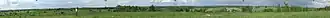 Panorama of the Łodź's Hills Landscape Park from a hill in Plichtów.Object marked green are in the Łodź's Hills Landscape Park.