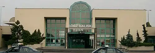 Łódź Kaliska is one of the two main railway stations in the central Polish city of Łódź. It is located west of the center of the city, in the district of Polesie, and it consists of six platforms. The first complex of the station, designed by Polish architect Czesław Domaniewski, was built in 1902 in the style of Art Nouveau. Inside, there were several Art Nouveau elements, including crystal windows in doors, as well as brass fittings. The station served the Warsaw–Kalisz Railway, built between 1900 and 1902.