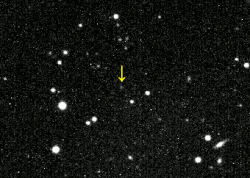 Within a month after Aya's discovery, Trujillo and Brown collaborated with Jean-Luc Margot and Frank Bertoldi to measure the object's diameter and thermal emission using the IRAM 30m radio telescope at Sierra Nevada, Spain.[20][19] Astronomers also found additional observations of Aya from the time before and during its discovery, which allowed for further refinement of orbit calculations.[21] The earliest pre-discovery observation of Aya comes from an image taken on 29 December 1997 by the NEAT/GEODSS program at Haleakalā Observatory, Hawaii.[1][21] As of 2025, Aya has been observed for over 27 years, or about 8% of its orbital period.[3][1]