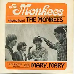 "(Theme from) The Monkees" is a 1966 pop rock song, written by Tommy Boyce and Bobby Hart as the signature tune for the TV series The Monkees.[2] Two versions were recorded – one for their first album The Monkees[2] and a second shorter rendition designed to open the television show. Both feature vocals by Micky Dolenz.