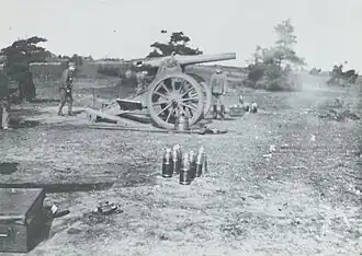 In December 1927 the siege artillery regiment ceased to exist as a unit. It was replaced by two regiments of dismounted artillery, one in Gorinchem, and one in Naarden. These contained the steel 15 cm and 12 cm Lang guns, which would be made more mobile, so they could serve as field artillery.[14]