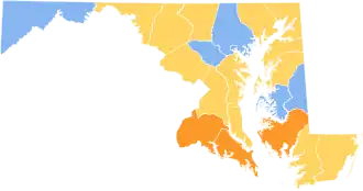 | Baltimore (City) | 10995 | 51.04% | 10474 | 48.62% | 72 | 0.33% | 521 | 2.42% | 21541 |