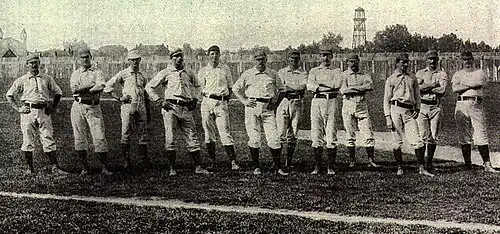 McGinnis was the first pitcher and he started 45 of the team's 80 games.[3] Jack Gleason made the team's first hit. It was a lead off single in the first innings. He also scored the first run on Comiskey's three-base hit. The team won their first game with a score of 9 runs to 7. McGinnis contributed two doubles.