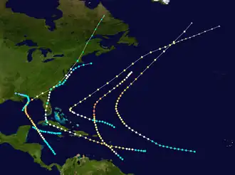 Seven October 21–29 Category 2 hurricane 110 (175) 955 Bahamas, Florida, Bermuda Unknown None