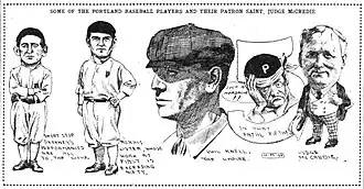 The team was owned by Judge William Wallace McCredie, who later represented the State of Washington in the U.S. House of Representatives. McCredie also served as the club's president while his son, Hugh, was the business manager and his wife, Alice, managed the ticket office. His nephew Walt McCredie played in the National League, batting .324 in 1903, but joined the Portland club as player-manager in 1904 after his uncle became the owner.[1] Walt McCredie was both the manager and one of the starting outfielders in 1906, leading the team to the pennant while also compiling a .306 batting average.[4]