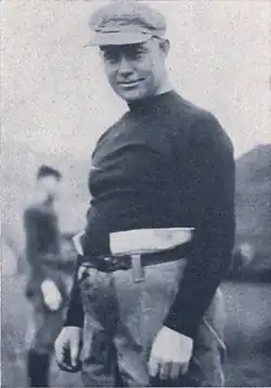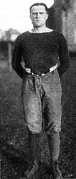 The experience in the line contrasted with inexperience in the backfield. The Wolverines were starting from scratch with the loss of all four backfield starters from the 1912 team.[5] Jimmy Craig had been the star halfback for Michigan in 1911 and 1912 and was also the 1912 intercollegiate hurdles champion.[6][7][8] (His older brother, Ralph Craig, was a track star at the University of Michigan who won gold medals in the 100 and 200-meter events at the 1912 Olympics in Stockholm, Sweden.[7]) In August 1913, Craig announced that he would no longer play football. Craig said he needed to drop athletics or fall behind in his university courses.[9] Another reason given for the decision was a bad knee.[1] Others speculated that Craig decided not to play, because he was not selected as captain of the 1913 team.[10]
