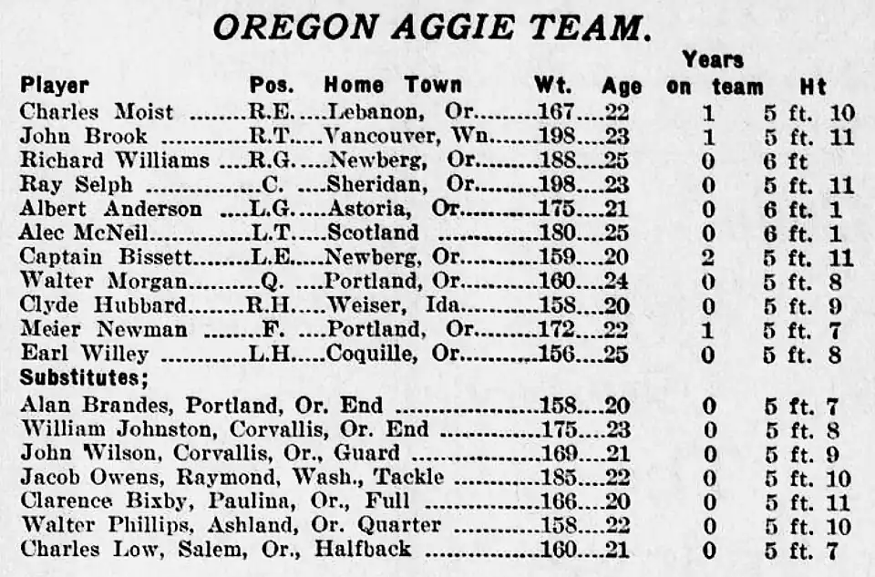 3. ^ "Oregon Aggies 13, Pullman team 10". The Sunday Oregonian. October 15, 1916. Retrieved May 5, 2025 – via Newspapers.com.