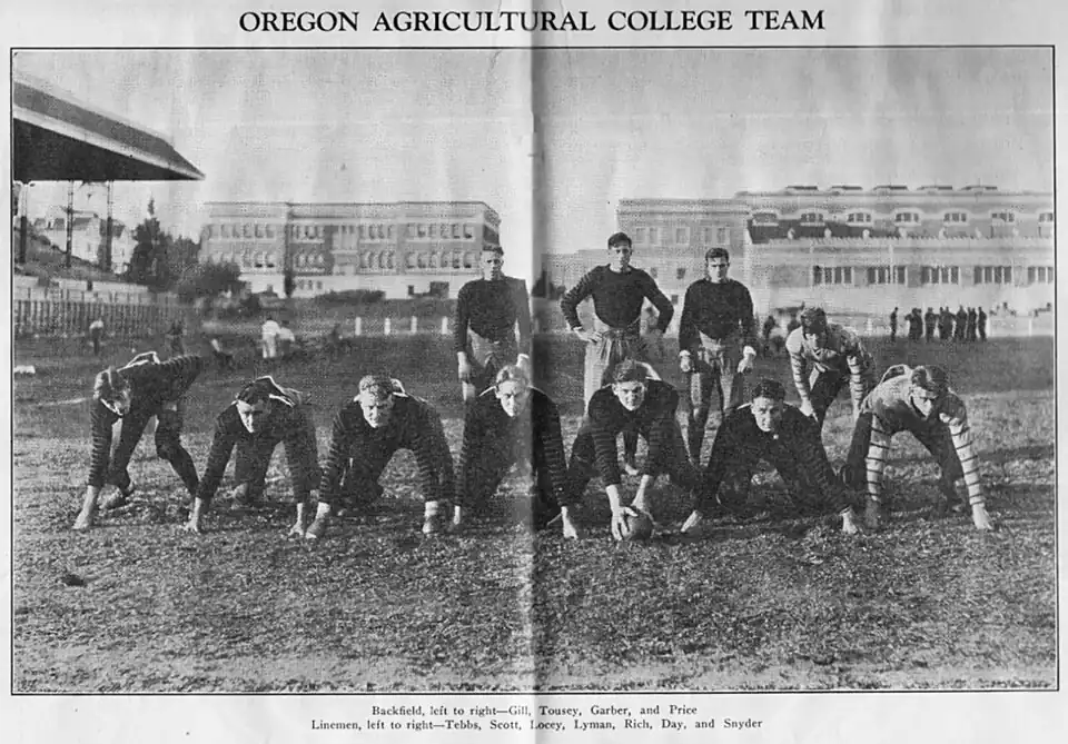 20. ^ "Fighting Aggies Strain at Leash," OAC Daily Barometer, Nov. 2, 1923, pp. 3-4.