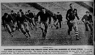 14. ^ Smith, J. C. (November 16, 1924). "Bear Tracks In The Stadium". The Boston Sunday Globe. Boston, Massachusetts. p. 19. Retrieved September 10, 2022 – via Newspapers.com Open access icon.