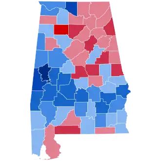 The conflict between disapproval of Smith's faith and policies on one hand and extreme traditional hostility towards the Republican Party in almost all of Alabama (the only exceptions being the historically anti-secession counties of Winston and a few populist strongholds like Chilton) produced an exceptionally bitter campaign.[8] Black Belt whites – who had controlled the state government since the disenfranchisement of blacks and poor whites – also felt Smith's social views obnoxious, especially his opposition to the Ku Klux Klan. Consequently, many of Alabama's voters swore to vote for Hoover without declaring themselves Republicans, instead calling themselves "Hoovercrats".[8] Defections were particularly pronounced in North Alabama, where a contiguous block of counties from Birmingham northeastwards to the Tennessee border uniformly gave majorities for Hoover. Hoover also won several counties in the far southern coastal regions, whose soils had always proved unsuitable for cotton plantations.[9] On the other hand, the whites of the black belt, who were like Al Smith "wet" (opposed to prohibition of alcohol), did not bolt from the Democratic Party because of this alcohol issue and their strong view that the Democrats were the best safeguard for white supremacy.[10]