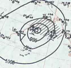 On November 1, a low-pressure area formed near the eastern coast of Sri Lanka. Developing further, as it tracked into the Arabian Sea two days later, it became a depression. Tracking westwards and then northwestwards, on November 6, the depression intensified further, becoming a deep depression.[52] Further deepening as it tracked northwards towards the coast of Gujarat, it attained a minimum pressure of 1,005 hPa (29.7 inHg) on November 12. However, soon after, it rapidly weakened, dissipating on November 15 over Kutch.[52]