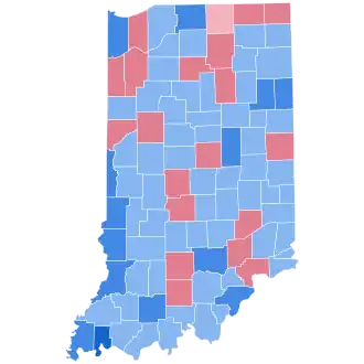 Indiana was won by incumbent President Franklin D. Roosevelt (DNew York), running with Vice President John Nance Garner of Texas, with 56.63% of the popular vote, against Governor Alf Landon (RKansas), running with businessman Frank Knox of Illinois, with 41.89% of the popular vote.[3][4] As of the 2020 presidential election, this is the last election in which Boone County, Rush County, Union County and Wayne County voted for a Democratic presidential candidate.[5] Indiana has only voted for the Democratic candidate twice since this election, in 1964 and in 2008. This marks the only time since 1856 that Indiana has voted Democratic in consecutive presidential elections.