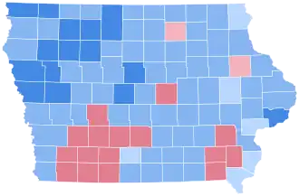 Iowa was won by incumbent President Franklin D. Roosevelt (DNew York), running with Vice President John Nance Garner, with 54.41% of the popular vote, against Governor Alf Landon (RKansas), running with Frank Knox, with 42.70% of the popular vote.[3][4] As of the 2024 presidential election, this is the last occasion when Sioux County, Lyon County and O'Brien County have voted for a Democratic presidential candidate.[5][6]