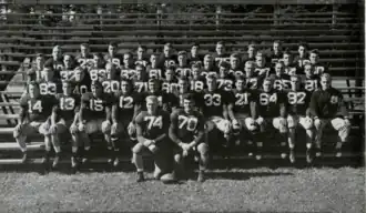 This was the inaugural season of competition in the Yankee Conference, which had been formed in December 1946.[4] Quarterback Bruce Mather led the team on offense, which used a T formation scheme.[5] Mather, back Carmen Ragonese, and tackle Clayton Lane were each selected in the 1948 NFL draft.[6] Ragonese, Mather, co-captain Ernest Rainey, and co-captain Lane were each inducted to the university's athletic hall of fame in 1982, 1984, 1986, and 1988, respectively; the 1947 team was inducted as a whole in 2001.[7]