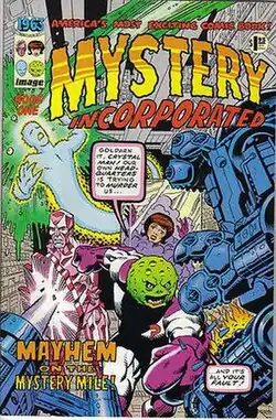 When an asteroid comes close to Earth, the government sent up physicist Craig Crandall, astronaut Biff Baker and students Tommy Baker and Jeannie Morrow to investigate via rocket. They discover alien statues which transform them into superpowered beings. They form a crimefighting team called Mystery Incorporated and establish an underground base called the Mystery Mile, fighting villains such as Amazonia, Doc Apocalypse and King Zero, becoming popular celebrities for their heroism.[21]