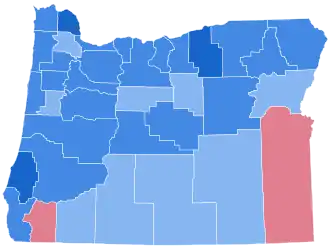 Oregon was won by incumbent President Lyndon B. Johnson (DTexas), with 63.72% of the popular vote, against Senator Barry Goldwater (RArizona), with 35.96% of the popular vote.[3][4] As of the 2024 presidential election, this is the last election in which the following counties voted for a Democratic presidential candidate: Baker, Douglas, Grant, Harney, Klamath, Lake, Polk, Sherman, Umatilla, Union, Wallowa, and Yamhill.[5] Furthermore, Oregon would not vote for a Democratic presidential candidate again until 1988, after which it has always gone Democratic. This is also the last time that a Democratic presidential nominee has carried a majority of Oregon's counties.