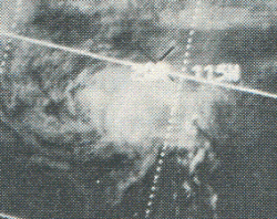 A flat low-pressure system appeared in an area of showers to the west-southwest of hurricane Lorraine around 1800 on the 20th. The French refrigerated cargo carrier BIAFRA was buffeted by 38-kn southerly winds, with a barometer reading 1006 mbar, near 13'N, 132'W, by the soon to be named tropical storm Maggie at 0000 on the 21st. Maggie intensified slowly while moving west-northwestward at 9 kn; her maximum winds were estimated at 55 kn at 0300 on the 25th. Maggie passed about 80 mi south of the island of Hawaii on the 25th, dumping torrential rains over the big island. Rainfall amounts ranged from 10 to 15 in on the windward side of the island from the Hamuka coast to Puna and from 1 to 7 in on the leeward side. Maggie was downgraded to a tropical depression at 0900 on the 26th near 18N, 157W. A westward turn saved Hawaii from a direct hit, but Maggie still brought strong surf and heavy yet beneficial rain to the island of Hawaii. There is some evidence that the remains of Maggie redeveloped into Hurricane Dot in the Central Pacific on September 1.
