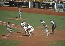 With his hard, physical play, catcher John Stearns emerged as a Mets fan favorite for a team with desperately few stars. On April 8, he triggered a bench-clearing brawl by running into Montreal Expos catcher Gary Carter at the plate. On June 30, Stearns defeated the Pittsburgh Pirates by tagging out Dave Parker to end the game.[12][13] Parker, who had run over two other catchers in the previous two weeks, suffered a broken cheekbone in the collision with Stearns. When the Pirates in-state rivals (also the Mets' own division rivals), the Philadelphia Phillies, next came to New York, they thanked Stearns for standing up to Parker. Stearns also led the Mets in stolen bases with 25, and in the process broke the National League record for catchers, which had been held by Johnny Kling since 1902.[14]