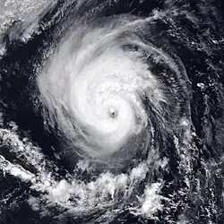 At the time, Fico was the longest-duration hurricane and furthest-traveled hurricane on record in the Central Pacific. It tracked further than any West Pacific typhoon by that point, and only one typhoonRita in 1972 – persisted at that intensity longer than Fico. In the Atlantic, only hurricanes Ginger, Carrie, and Faith exceeded Fico with regard to distance traveled or time spent as a hurricane.[8] Fico produced considerable impacts in Hawaii. Southerly flow in association with a cyclone over the Southern Hemisphere combined with east-northeasterly flow from the hurricane, producing beach road flooding along the southeastern shore of the Big Island while Fico was still 500 mi (800 km) away. Ocean waves, breaking at 15–20 ft (4.6–6.1 m) at the coast and larger values offshore, caused severe damage to beachfront homes and roads. Similar waves were observed along the coasts of Oahu and Kauai. A 43 ft (13 m) sloop became stranded in the cyclone's circulation, forcing a Navy torpedo boat to rescue six people on board. A 65 ft (20 m) tugboat was run aground on a reef along the southern shore of Kauai. By July 21, a strong trade wind gradient exacerbated by the presence of Fico caused widespread winds over 60 mph (97 km/h), which resulted in downed trees and power outages. Overall damage in Hawaii totaled $200,000.[9] A week later, the remnants of the storm became intertwined with a strong frontal system, producing heavy rain and winds up to 45 mph (72 km/h) to the Aleutian Islands.[7]