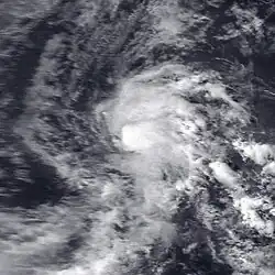 The season's second tropical cyclone began as a disturbance spawned by an African tropical wave southwest of the Mexico coastline on June 15.[4] It moved generally westward over very warm waters, and observations from satellite imagery and ships outlined the formation of a tropical depression by 00:00 UTC on June 17.[5] Six hours later, the depression intensified into Tropical Storm Bud.[6] Continued ship observations relayed Bud's intensification to a 60 mph (97 km/h) cyclone on June 18, but the storm weakened thereafter as it moved west-northwest under the influence of a ridge,[5] and it ultimately dissipated within the ITCZ after 06:00 UTC on June 26 while located over the open Central Pacific.[6][7]