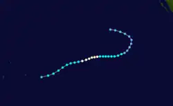 In addition to the 11 named storms, there were two additional storms in the season, classified by the Joint Typhoon Warning Center (JTWC).[nb 2] The first developed in July in the Australian basin, and briefly crossed into the south-west Indian Ocean on July 14. Soon after it re-entered the Australian basin and dissipated.[6] The other formed just southeast of Diego Garcia on November 20. It tracked to the southwest, and the JTWC estimated peak 1 minute sustained winds of 85 km/h (55 mph). The storm dissipated on November 25 northeast of Mauritius.[7] In addition, Cyclone Daryl, which formed in the Australian basin on March 6, crossed into the south-west Indian Ocean on March 16 as a weakening storm without being renamed. Two days later it re-entered the Australian basin before dissipating.[8]