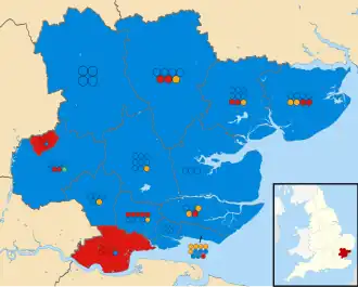All 98 seats to Essex County Council 49 seats needed for a majority | |||||||||||||||||||||||||||||||||||||||||||||||||||||||||||||||||