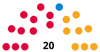 Last election 12 seats, 45.4% 7 seats, 35.3% 1 seats, 6.8%