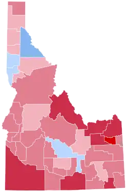 With 52.18% of the popular vote, Idaho proved to be Dole's fourth strongest state in the 1996 election after neighboring Utah, Kansas and Nebraska.[3] The state proved to be Ross Perot's third strongest state in the election, after Maine and neighboring Montana. This also marked the first time since statehood that a Democrat was reelected president without carrying Idaho.