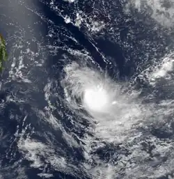 The season had the latest start in 30 years, with the first depression forming in January.[1] The first storm, Anacelle, was not named until February 8, which retains the record for the latest date of the first named storm.[4] For the early portion of the season, there were unusually quiet conditions across much of the basin, along with higher than normal pressure. The Intertropical Convergence Zone (ITCZ) associated with the monsoon only became active in February, allowing tropical cyclogenesis to occur more frequently. There were six tropical storms during the season, of which only one attained tropical cyclone status; these are below the averages of 9 and 4, respectively. No storms attained intense tropical cyclone status. The season's low activity contrasted that of the previous season, which was much more active. There were 18 days in which a storm was active, the lowest since 1982–83. An ongoing El Niño was evident during the season.[1]