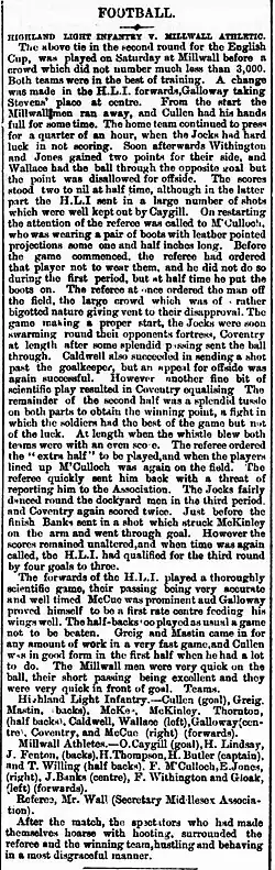 1891–92 FA Cup 2nd qualifying round, Millwall Athletic 3–4 1st Highland Light Infantry, Dover Express, 30 October 1891