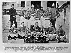 In 1893–94 and 1894–95, the club reached the semi-final of the Army Football Association Cup, and it won the Aldershot Divisional FA Cup on its first instalment in 1894–95.[16] After the regiment was posted to Malta in 1896, the football side won the Governor's Cup three times, Soldiers' Club Cup, and Island Cup, all by 1900.[17]