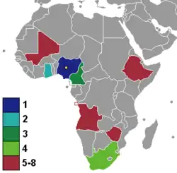 | Winners against Gabon | 12 October 2002 | 3 (1991, 1998, 2000) | |
