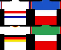 The jerseys tend to represent the countries' flag or use the colours from it.