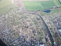 Access was restricted to over 350 homes in the town of Kaiapoi, of which about 100 were deemed unsafe.[83] Some 22 commercial properties were deemed unsafe. According to Ron Keating, Mayor of Waimakariri District, the town "will never be the same again".[84] As noted above, damage to buried pipes may have allowed sewage to contaminate the residential water supply, and residents were warned to boil tap water before using it for brushing teeth, drinking, and washing or cooking food. A boil water notice for most of Selwyn District was lifted on 9 September.[85] E. coli had been found in a water sample from Kaiapoi,[86] and a boil water notice remained in effect for parts of Waimakariri District[87][88] until 19 September.