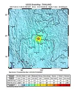- ^ a b c "M 6.1 – 13 km NNW of Phan, Thailand". United States Geological Survey. May 5, 2014. Retrieved May 5, 2014.