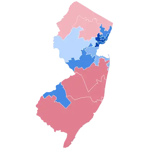 Hillary Clinton's 55.5% of the vote was 2.9% less than Barack Obama's win in the state in 2012. Overall, the trend from 2012 to 2016 was that suburban areas of central and northern New Jersey voted more Democratic, while the shore and southern New Jersey voted more Republican. Clinton's most notable improvements over Obama in 2012 were seen in Union, Somerset, and Morris Counties. In Morris, Clinton came within 5% of winning the county, which had not voted for a Democratic presidential candidate since 1964, and would later vote Democratic in 2020. Clinton's stronger performance in the suburban towns of north-central New Jersey, such as Summit, Westfield, and Bridgewater, helped her narrowly win the 7th congressional district.