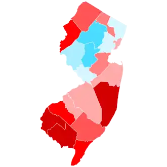 On the other hand, southern New Jersey, especially Cumberland County and Salem County, voted significantly more Republican than they had in 2012. For example, even though Cumberland County voted Democratic in both 2012 and 2016, Clinton won it by just 6%, whereas Obama won it by nearly 24% in 2012. Meanwhile, Trump flipped Salem County after Obama won it in 2012, and he also was the first Republican to win Gloucester County since 1988. Additionally, the four shore counties of Monmouth, Ocean, Atlantic, and Cape May all voted more Republican than they had in 2012, as Mitt Romney had won these four counties collectively by around 6% in 2012, but Trump won them by 17% in 2016.