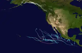 The 2017 Pacific hurricane season was an above average Pacific hurricane season in terms of named storms,[nb 1] though less active than the previous three, featuring eighteen named storms, nine hurricanes, and four major hurricanes.[nb 2] Despite the considerable amount of activity, most of the storms were weak and short-lived. The season officially started on May 15 in the eastern Pacific Ocean, and on June 1 in the central Pacific; they both ended on November 30. These dates conventionally delimit the period of each year when most tropical cyclones form in the respective regions. However, the formation of tropical cyclones is possible at any time of the year, as illustrated in 2017 by the formation of the season's first named storm, Tropical Storm Adrian, on May 9. At the time, this was the earliest formation of a tropical storm on record in the eastern Pacific basin proper (east of 140°W). The season saw near-average activity in terms of accumulated cyclone energy (ACE), in stark contrast to the extremely active seasons in 2014, 2015, and 2016; and for the first time since 2012, no tropical cyclones formed in the Central Pacific basin. However, for the third year in a row, the season featured above-average activity in July, with the ACE value being the fifth highest for the month. Damage across the basin reached $375.28 million (2017 USD),[nb 3] while 45 people were killed by the various storms.
