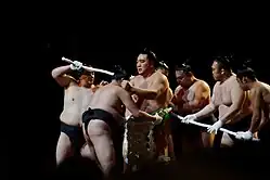 2: Kisenosato wins the All Japan Rikishi Tournament, a knock-out exhibition at the Kokugikan, for the second year in a row.[37] He defeats Takekaze in the final. The jūryō tournament is held by Seiro.