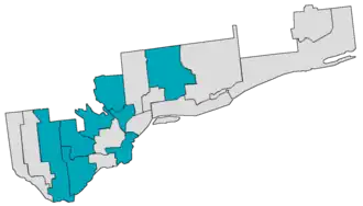 Note: Candidate campaign colours, unless a member of a party, are based on the prominent colour used in campaign items (signs, literature, etc.) or colours used in polling graphs and are used as a visual differentiation between candidates.