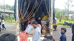 The most affected regions were the districts of Raigad, Ratnagiri, Sindhudurg, Satara, Sangli and Kolhapur.[7] Due to heavy rains, more than 1,020 villages were affected in these districts. Over 375,000 people have been evacuated, of whom around 206,000 were from Sangli district and around 150,000 from Kolhapur district.[7] There have been more than 28,700 poultry deaths and around 300 other animal deaths in Kolhapur, Sangli, Satara and Sindhudurg districts.[7] Initial estimates state that over 2 lakh (200,000) hectares of crops have been damaged in the floods.[8]