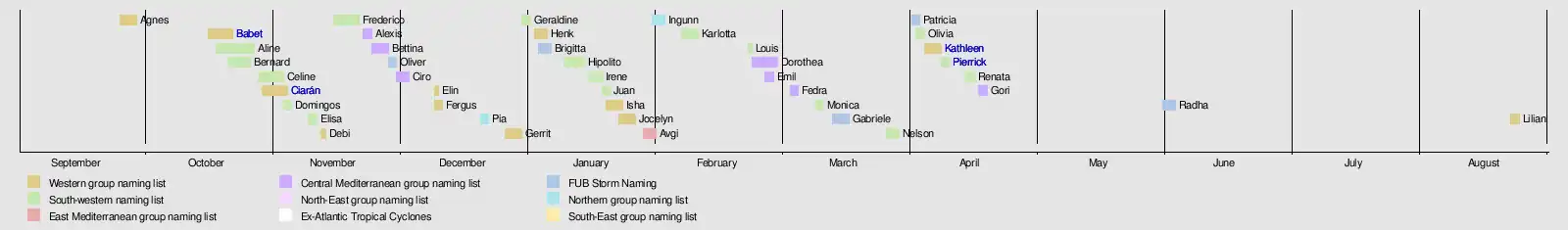 This was the seventh year in which the meteorological agencies of France, Spain and Portugal named storms that affected their areas.[10]