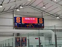 Syracuse vs. Pitt football advert at the Tennity Ice Skating Pavilion, Syracuse University.