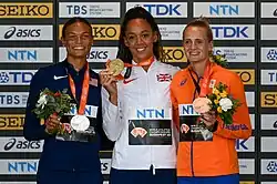 1st place, gold medalist(s) Katarina Johnson-Thompson  Great Britain & N.I. (GBR) 13.50 1.86 13.64 23.48 6.54 46.14 2:05.63 6740 SB