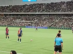 Pre-season matches were played in August, with the first match taking place in Germany: Pajor and Nazareth made their unofficial debuts for the club, with three goal contributions between them in the 5–1 win.[30] Other pre-season games were played in Barcelona and the United States.